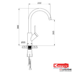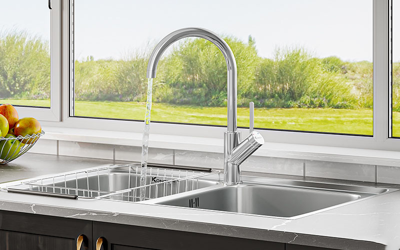 - Vòi rửa Konox Modo Chrome có 2 đường nóng lạnh
