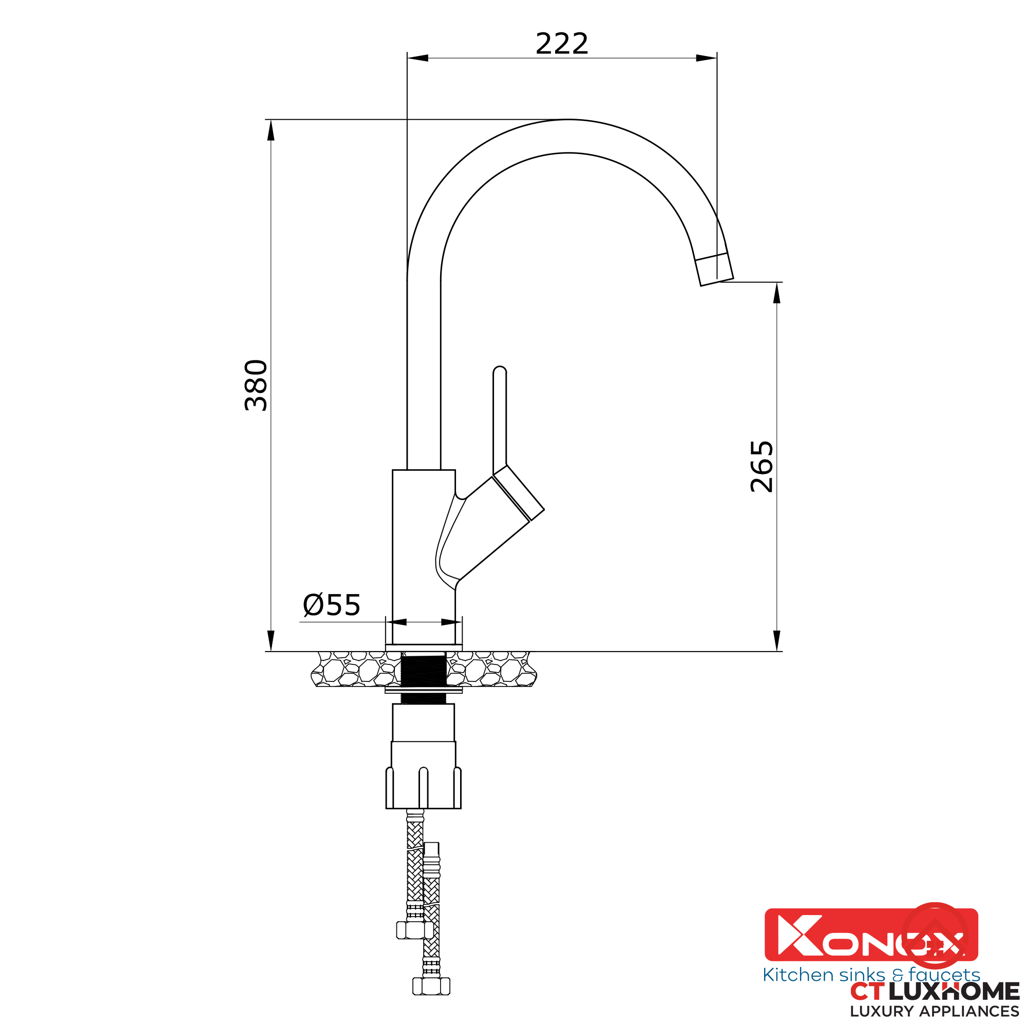 - Bề mặt vòi rửa Konox Modo Chrome mạ sáng bóng bền lâu, chống bám vân tay với công nghệ mạ PVD mạ chrome