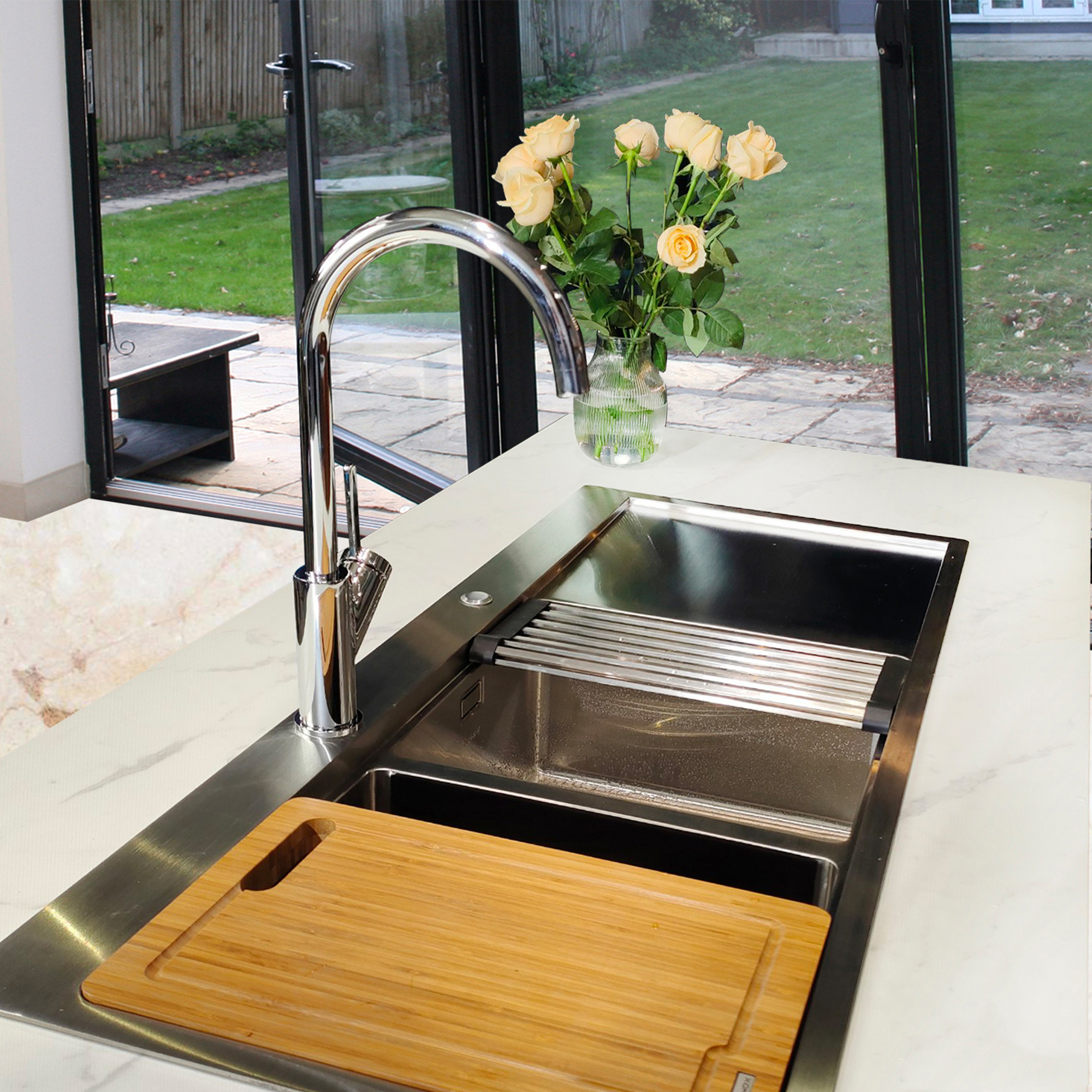 - Tay vòi ngang tối ưu không gian bàn bếp