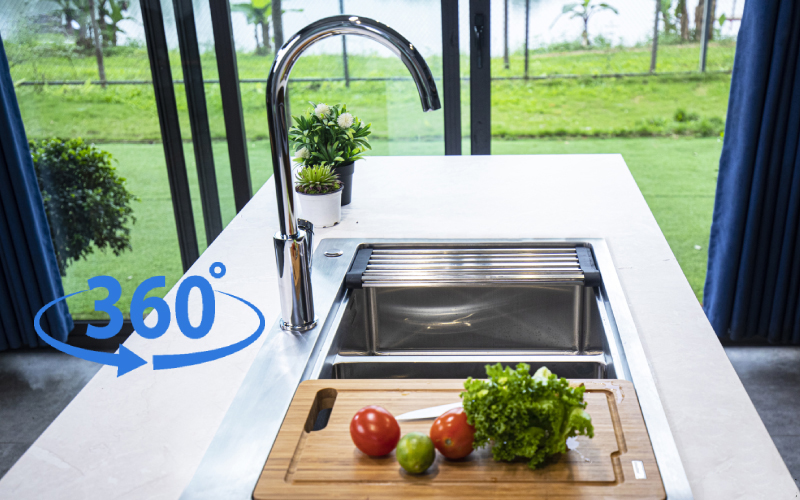 - Thân vòi xoay 360 độ cho phạm vi tiếp cận lớn