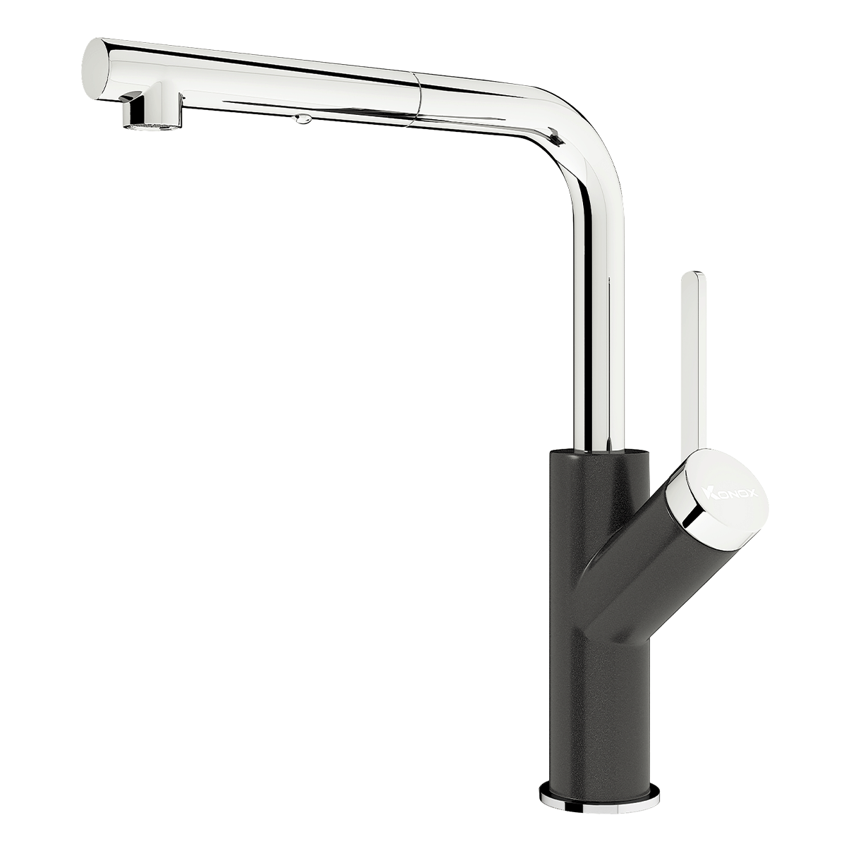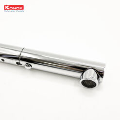 - Bề mặt vòi rửa Konox Artan Black mạ sáng bóng bền lâu, chống bám vân tay với công nghệ mạ PVD mạ vân đá