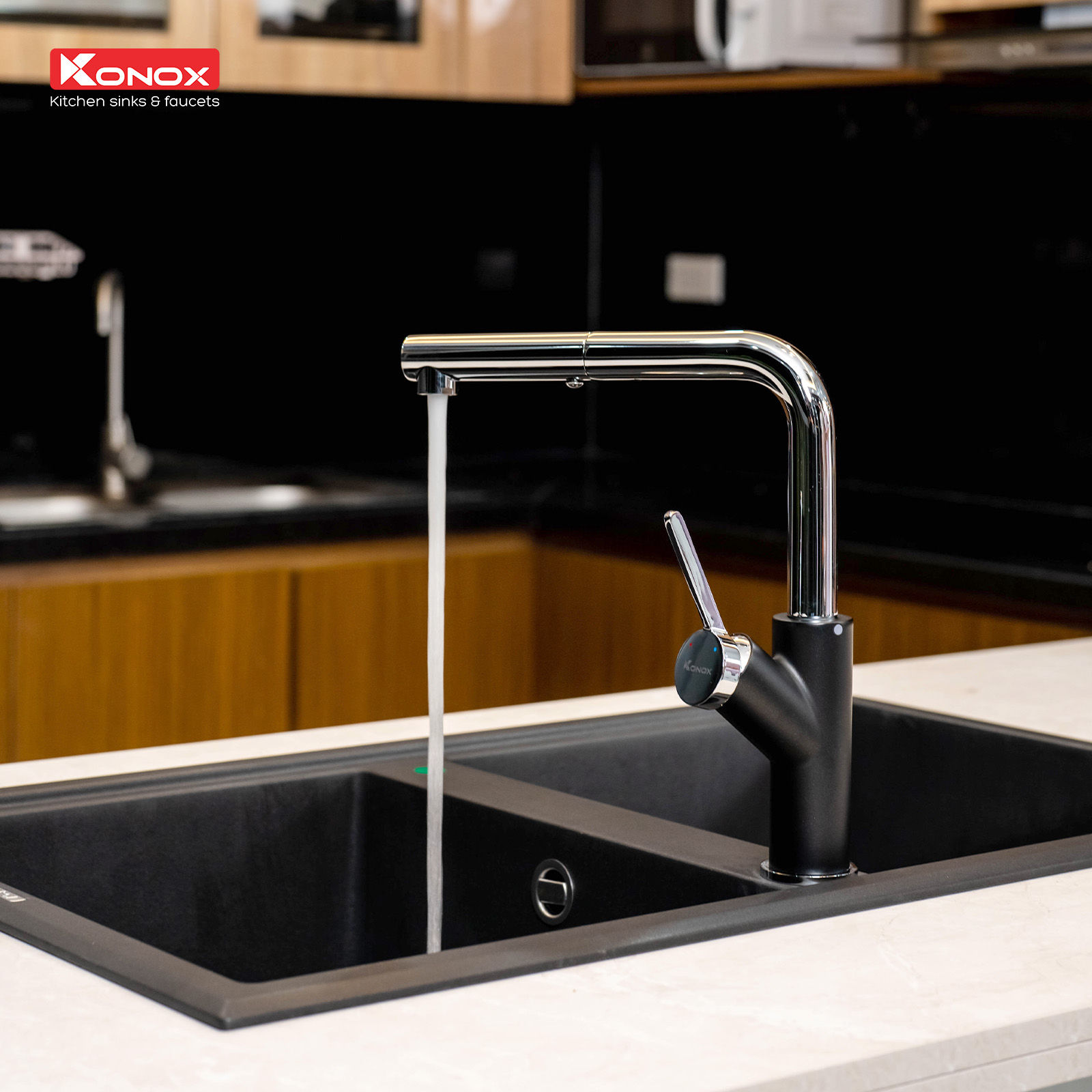 - Vòi rửa Konox Artan Black 2 đường nóng lạnh